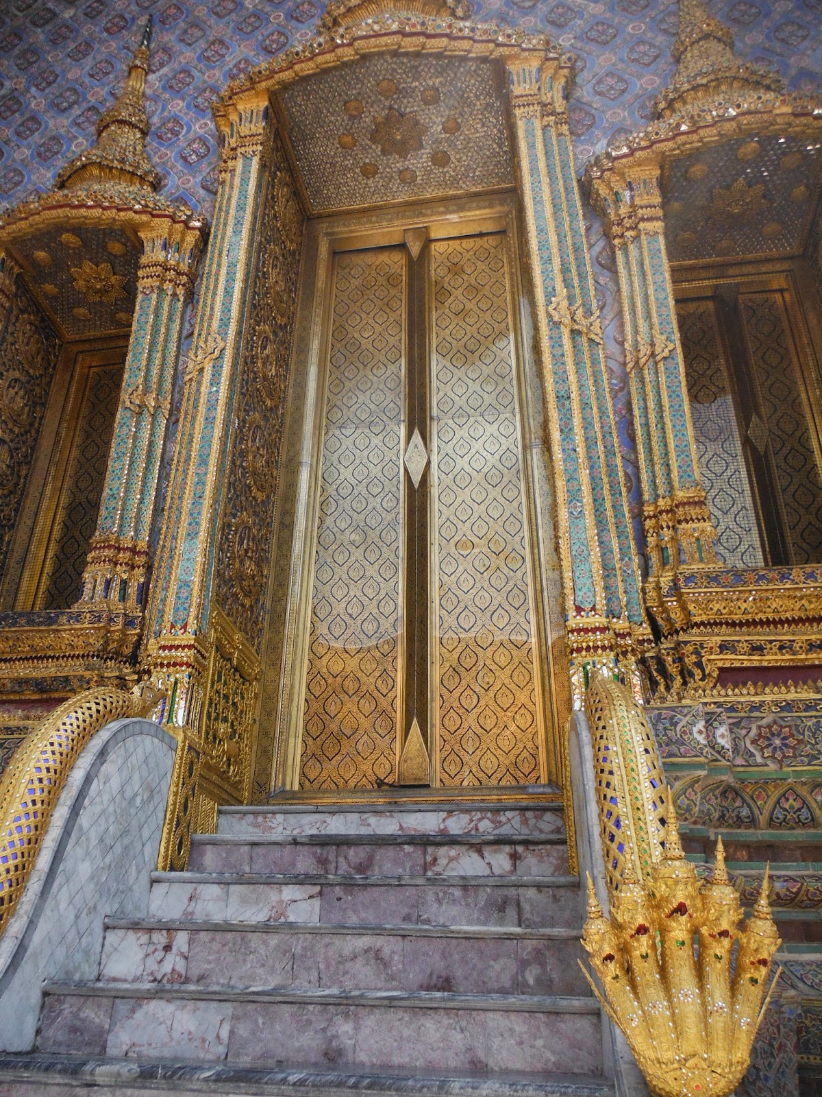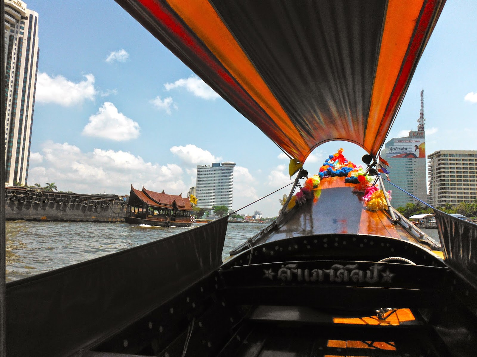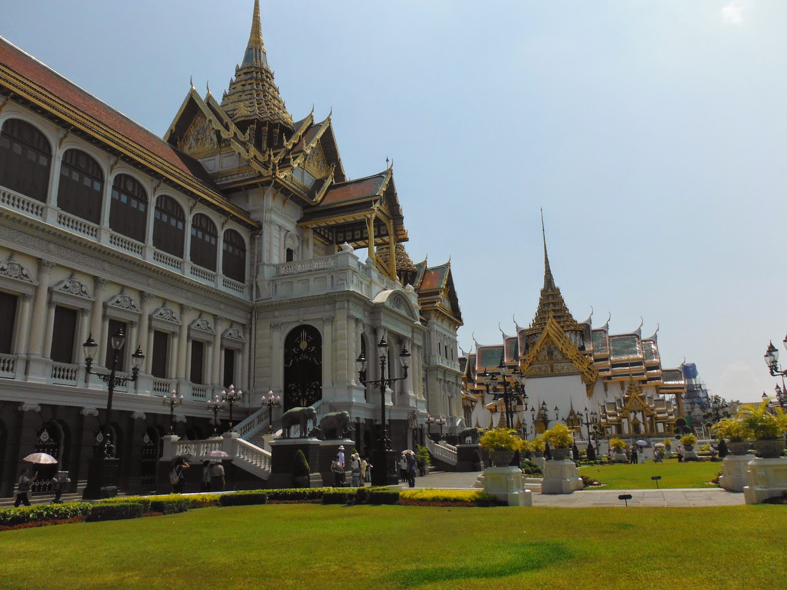 I checked into the hotel, the H-Residence on Sathorn, in Bangkok at 2 AM Thailand time, slept for a couple hours, and woke to find breakfast wasn’t anything like American breakfasts. There was toast and frosted flakes next to the fried rice, hot dogs, and various other unidentifiable Thai foods. A fellow soon-to-be-teacher was eating breakfast, so we decided to head out to check out Bangkok. First thing I noticed, besides the heat, was the smell. Garbage cans on the street aren’t a common thing, so the garbage is placed on the sidewalk, where it bakes for who knows how long before being picked up. It’s a very busy city, but the Thai are very friendly. We took the sky train to a long boat that took us down the river to the Grand Palace.