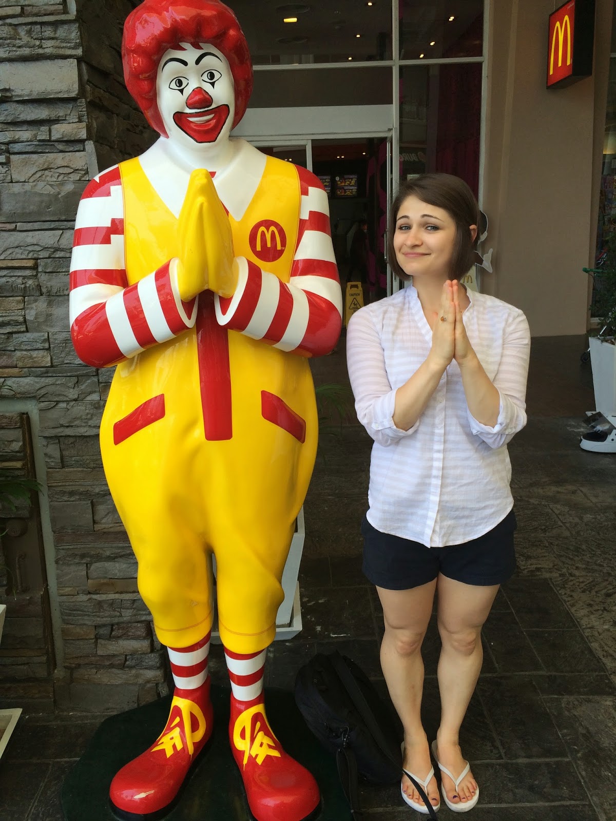 Our next adventure was to travel by a van to Hua Hin, where I will be residing for the next month. We started our first day of orientation by going to the local mall for some groceries and other things we may need. There was a McDonald’s, KFC, Dunkin’ Donuts, Baskin Robins, and a couple other American foods. So much for escaping that! I settled on a noodle soup for lunch with pork. It came with a liver surprise! Either way, it was delicious. After the mall, we went swimming in the Thai Bay. The water was as hot as the bathtub, but refreshing nonetheless.