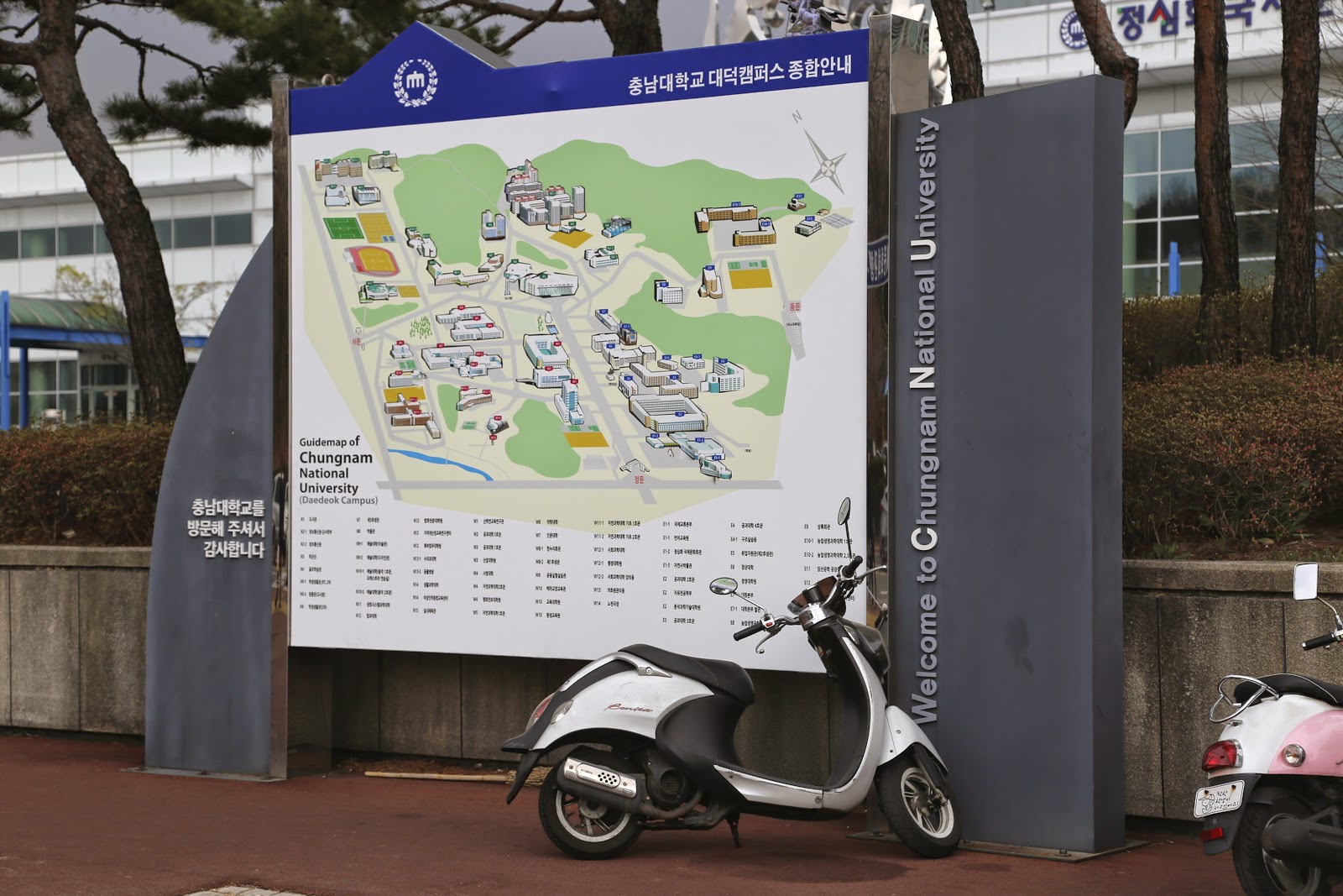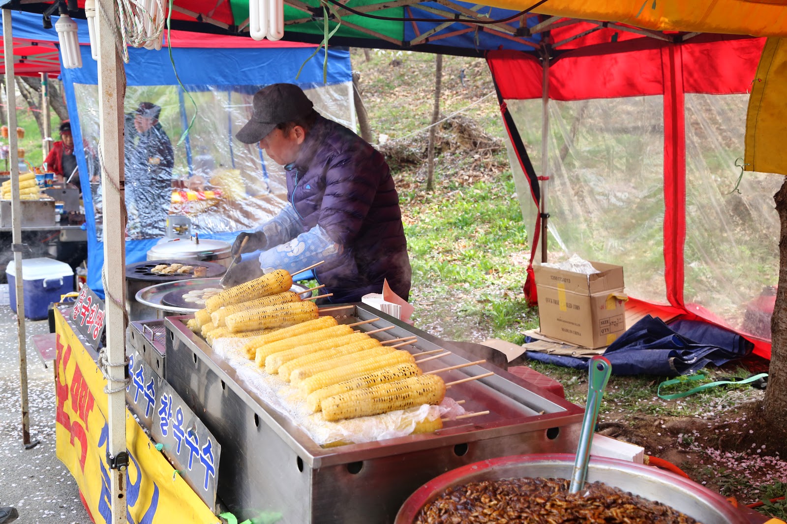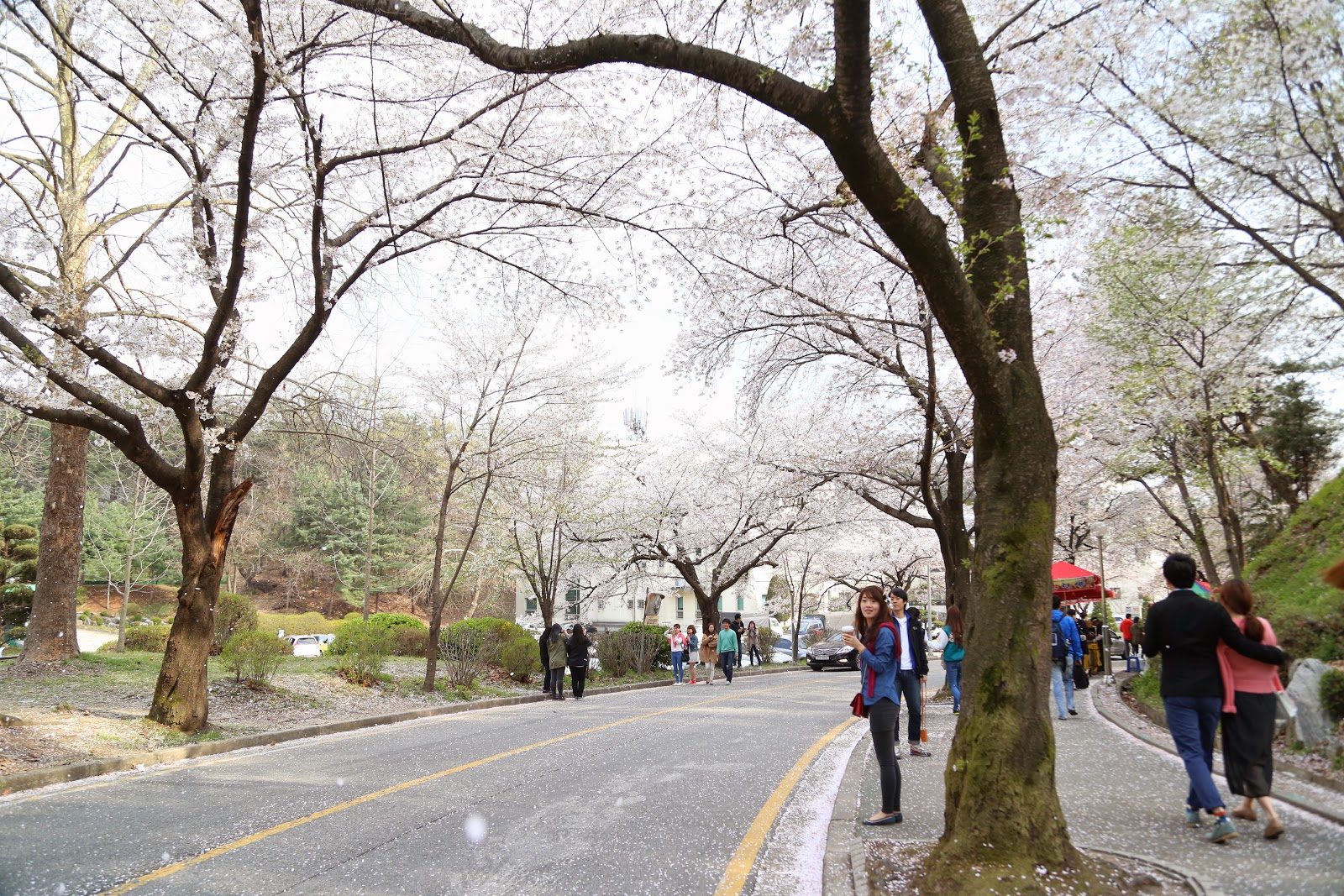 After Dunsan, I took the subway to the Chungnam University area to go to the Cherry Blossom Festival. I decided just to go by myself so I could enjoy the day leisurely and take tons of photographs. The weather changed all of a sudden, and it got cloudy. Bye-bye blue skies. Hello gray ones. However, I think it’s beautiful. This river runs throughout Daejeon, and you often find walkers and joggers along the river.
