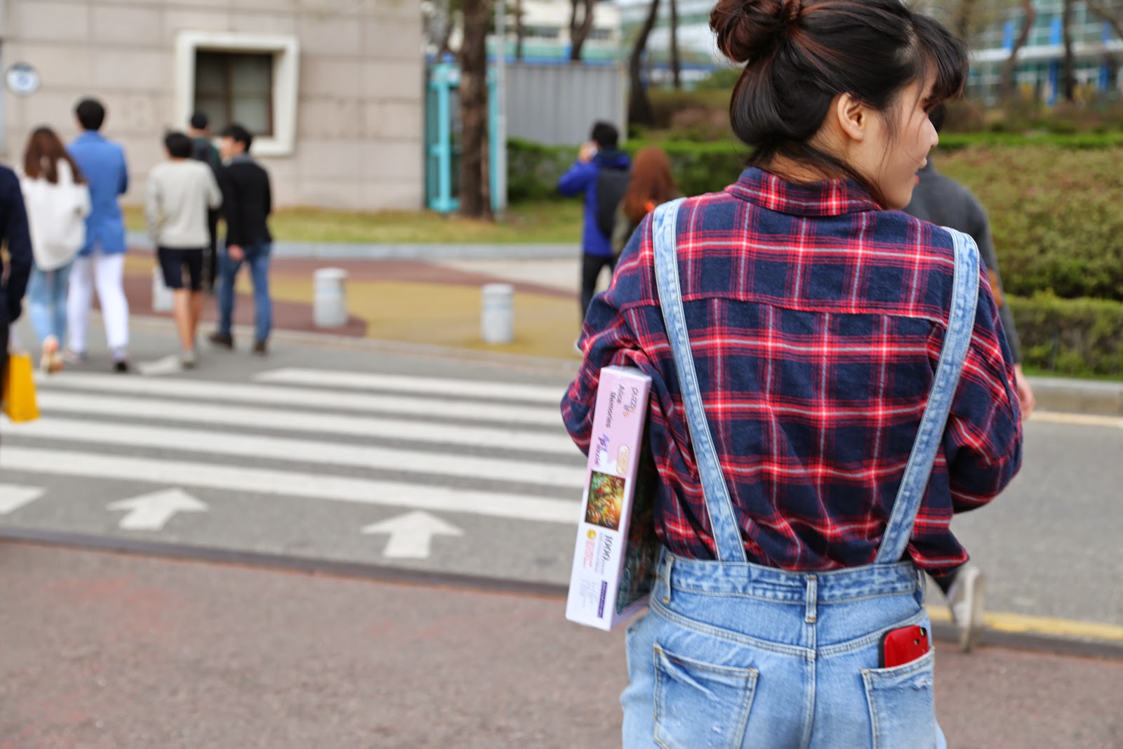 In Korea, boyfriends treat their girlfriends so sweet. They even carry their purses for them. Do you see the guy in blue carrying his girlfriend’s purse?