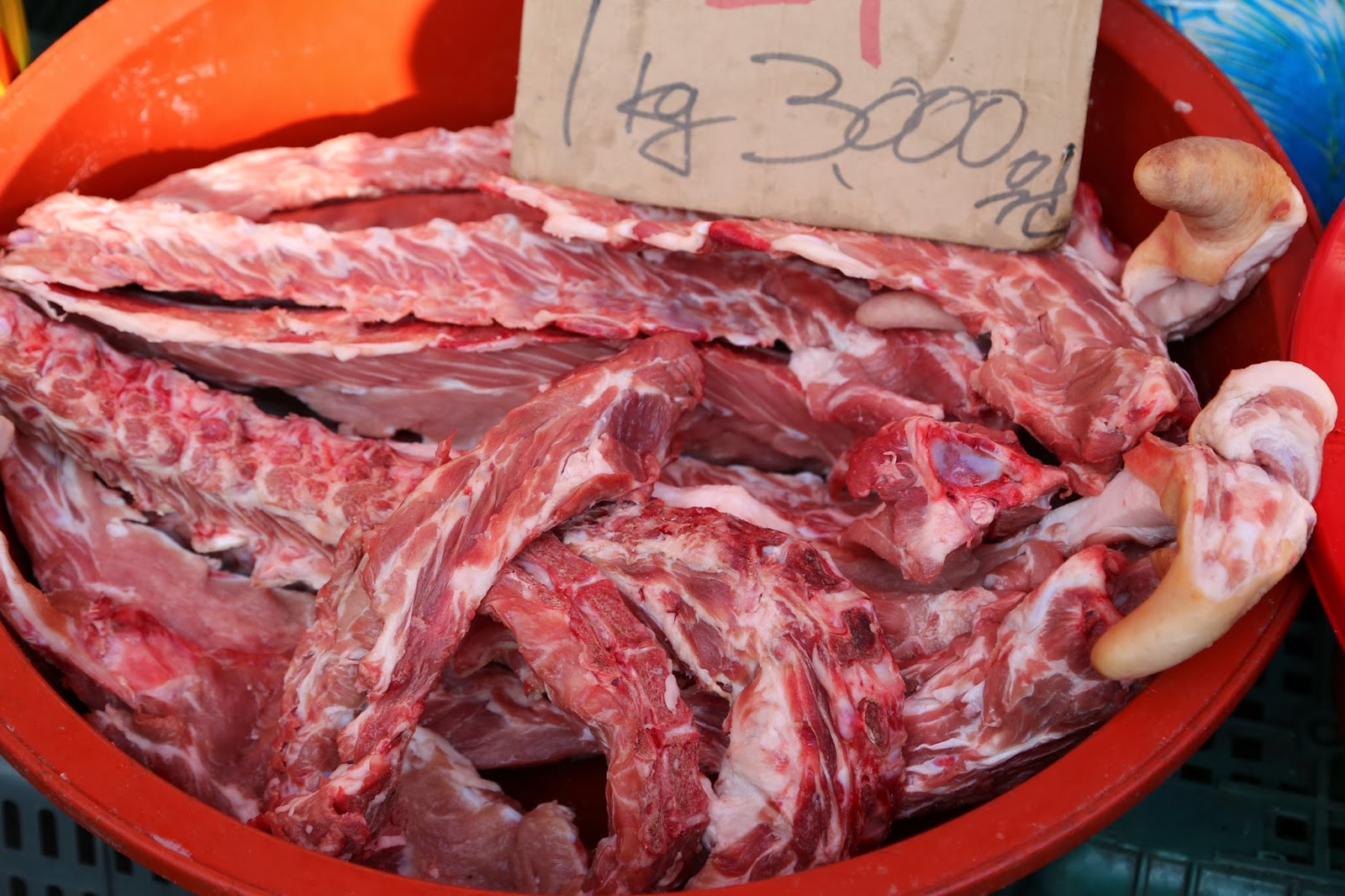 Only in Asia will you find raw meat in a basket or a box…