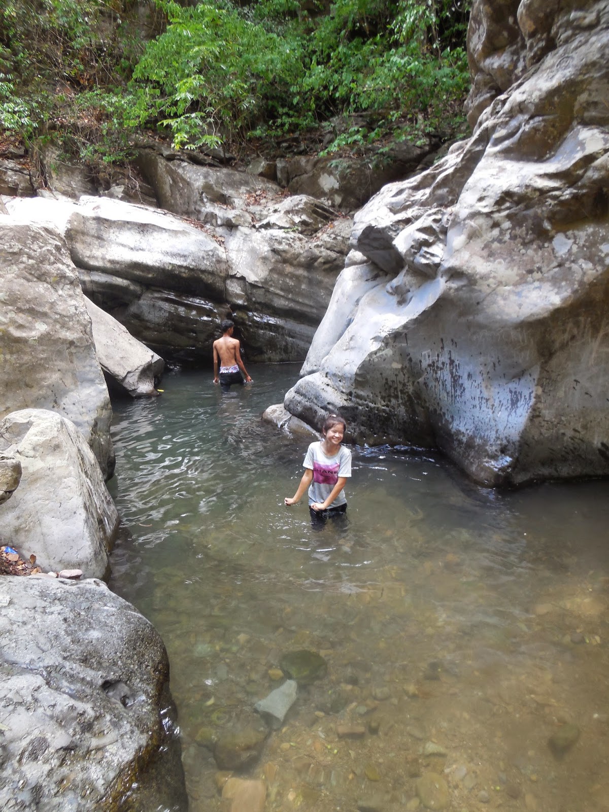 Do you see that slanted rock in the middle? It functions as a waterslide. I showed curiosity and one of the girls showed me how to get up there and slide down. It was fun! |