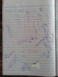 -Of course we talked about what it means to be thankful. And of course we drew turkeys using our hands. It got interesting….