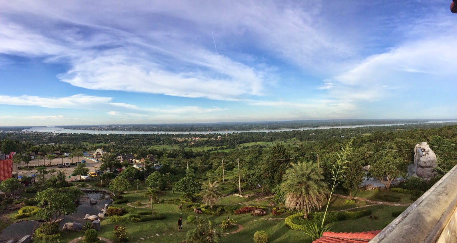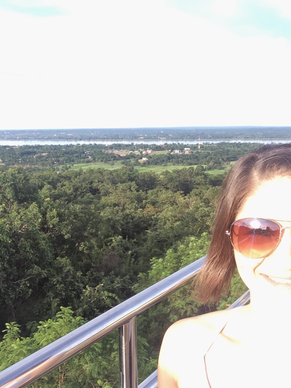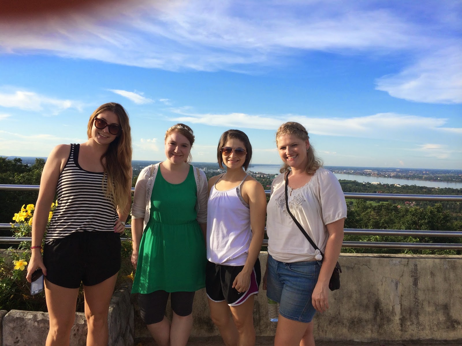 the weekend after dinner at p hong’s house, she took us to the overlook on the ‘mountain’, which is really more of a big hill you have to drive up. the overlook is really pretty though. you can see all of mukdahan, the mekhong river, and laos. i went up there with some friends and had the thai version of a grapefruit. gonna miss all of the delicious fruits here!