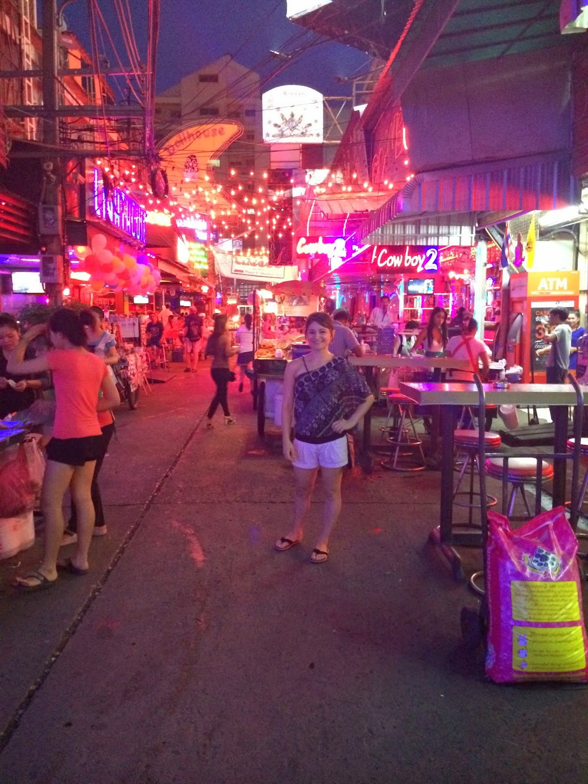 after our trip to mbk (where i found another dunkin’ donuts and had my dunkin’ fix), we decided it was nap time and worked our way back to the hostel. along the way, we stopped to get a thai oil massage. needless to say, that was an experience. it was nice and did help with the tight muscles from the overnight bus ride. then, after a quick nap and a shower, we headed out for a night on the town.