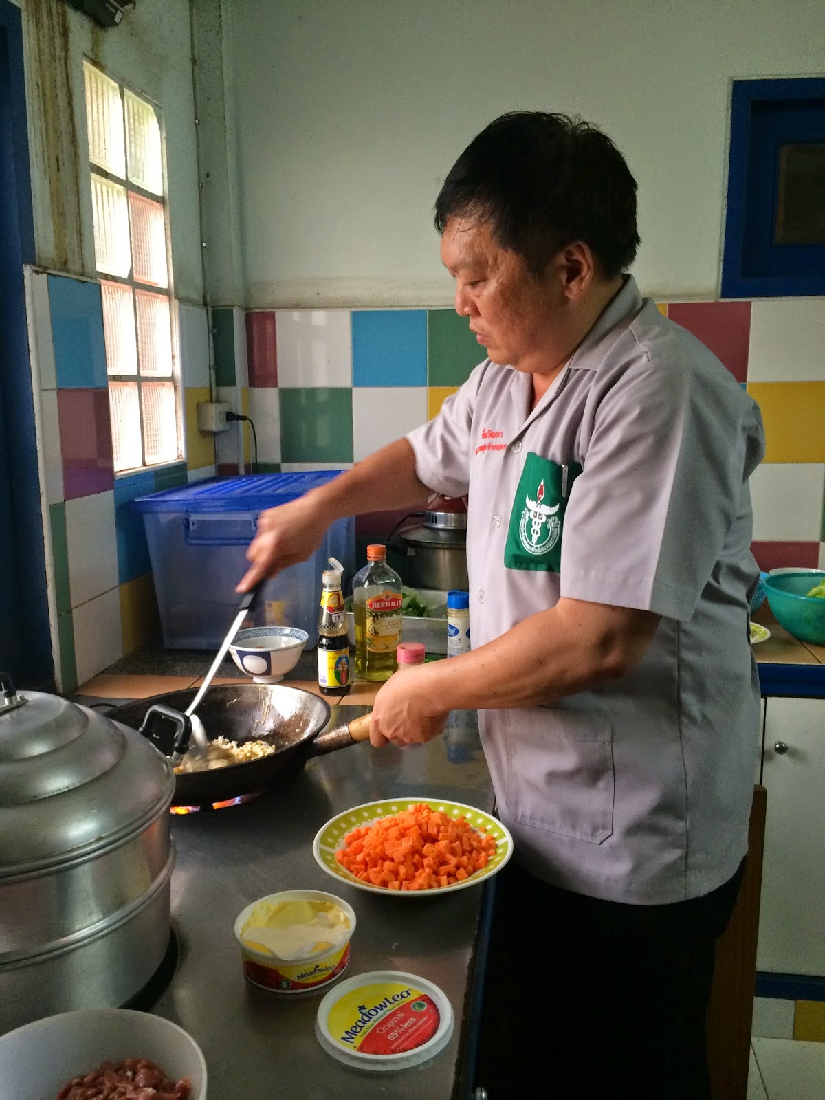 remember my really wonderful co teacher? she invited all of the foreign teachers to her home one night for dinner. she cooked a bunch of thai food (i made chicken fajitas with tortillas taco seasonings from america. ruby made guacamole. can you say one happy girl?) we had pad thai, fried rice, stir fried veggies with meat, and one of my favorite dishes, stir fried morning glory with chiles and other goodies.