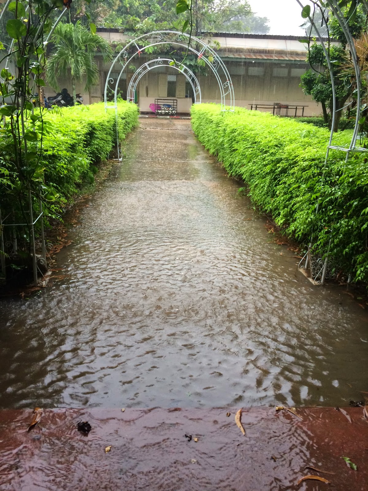 it also rains a lot in thailand. and almost every day. some days though, it reeeealllly rains/floods. torrential downpour in 2.5 seconds. here are some pics from around the school when it’s pouring.