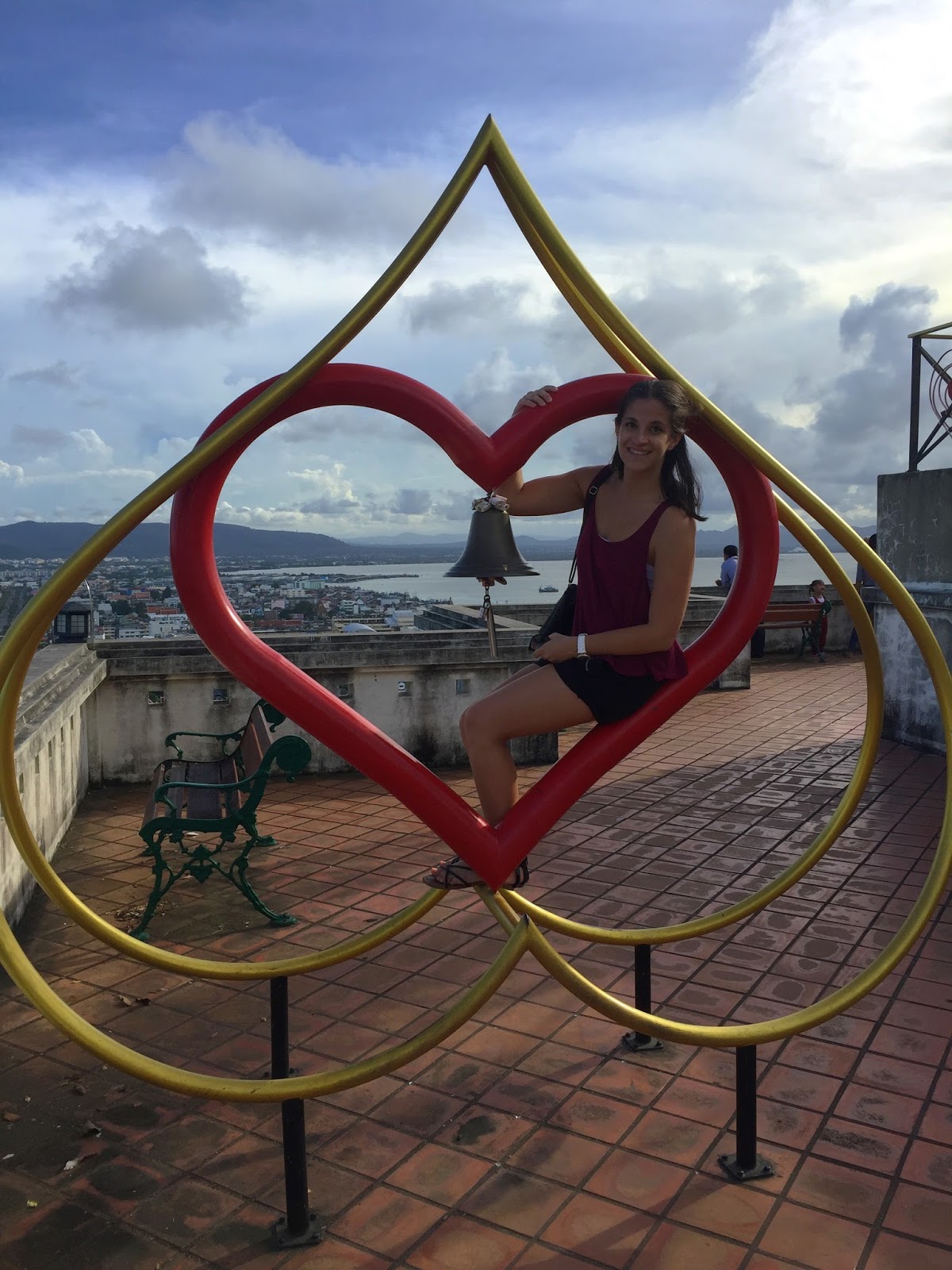 This weekend, we took our beloved motorbikes for a ride to Songkhla City. *Side Story- We have officially given our bikes a name. I named my baby, Marcy, and Erica named her’s, Susie*. Each time I visit Songkhla, I love it even more. It is a bit greener and a bit more tropical looking than Hat Yai; it can be a nice retreat from the big city. We went to a delicious café called the Secret Garden. They have a variety of Western dishes that are actually done right! It was a nice break from Thai food, even though I still crave Thai food every day. I often think about how I am going to cope with this when I am back in the States :/. After the café, we headed to Tang Kuan Hilltop, which has a park with stunning views of Songkhla, the ocean and of course, monkeys!!